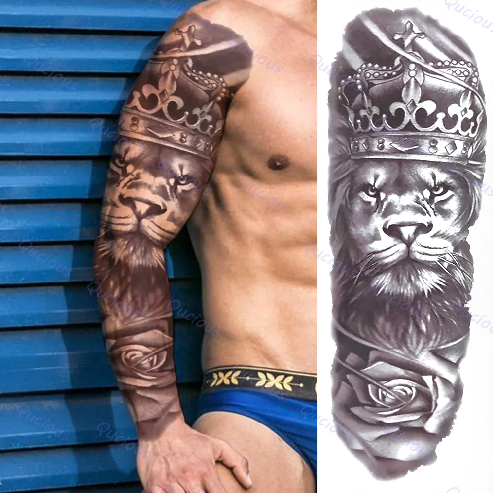 Lion King Volle Hulse Temporare Tattoos Fur Manner Frauen Erwachsene Blume Schwarz Wolf Tatoo Aufkleber 3d Beast Realistische Gefalschte Arm Tattoos Aliexpress Mobile
